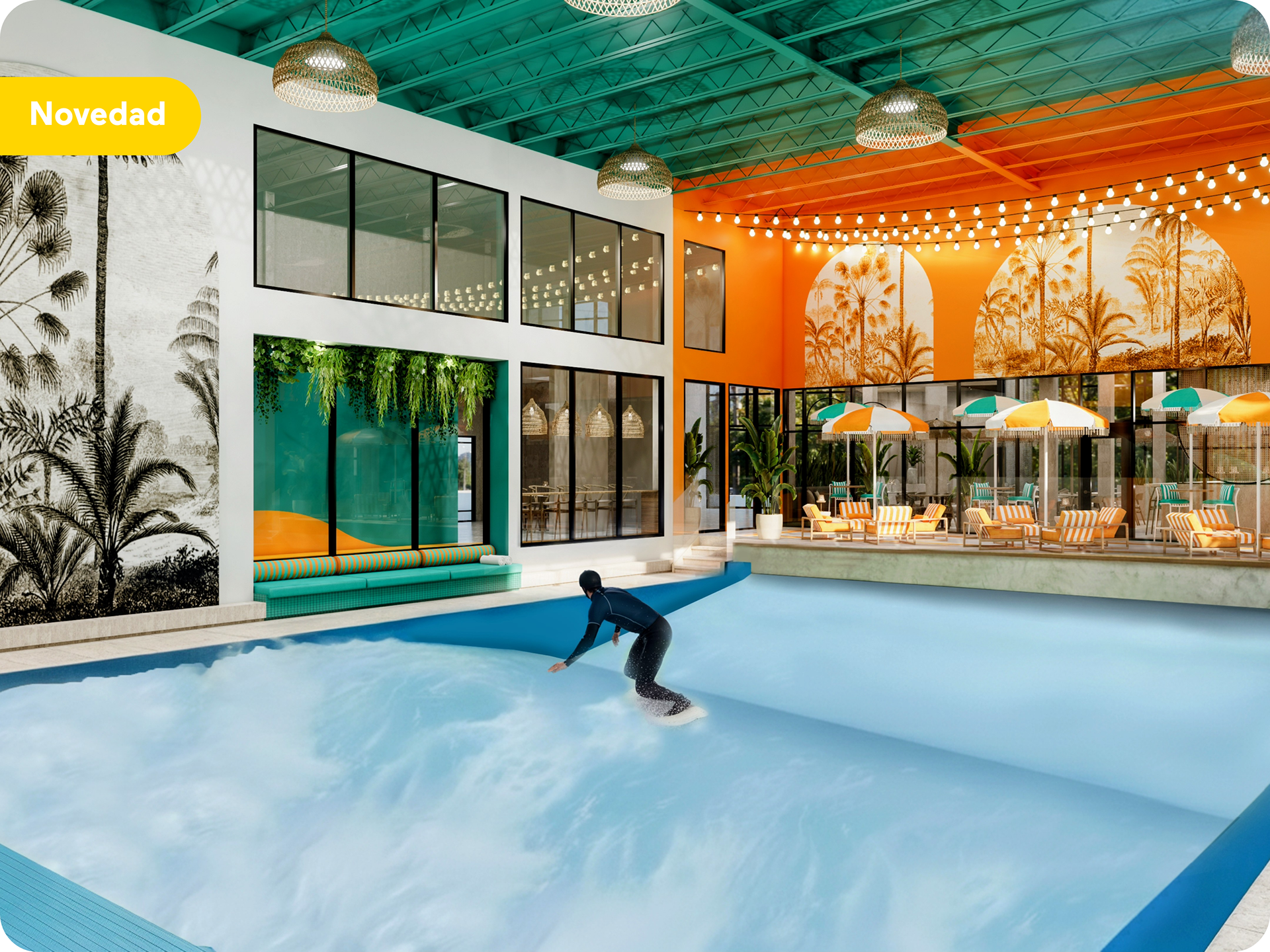 El complejo Aloha Surf es un auténtico centro recreativo que integra deporte y entretenimiento a la perfección. Si bien durante todo el año el surf es la principal atracción, en las instalaciones se contará con un gimnasio de alto rendimiento, clases de yoga y spinning, y programas de recuperación post-entrenamiento. También hay mucho espacio para divertirse, con una zona de juegos recreativos, patinaje retro, simuladores de golf, la boutique Sport Radical y el restaurante Aloha Sunset, de inspiración californiana. Un minigolf de 18 hoyos en la azotea y una gran terraza panorámica complementan la experiencia. Las reservas se abrirán próximamente.